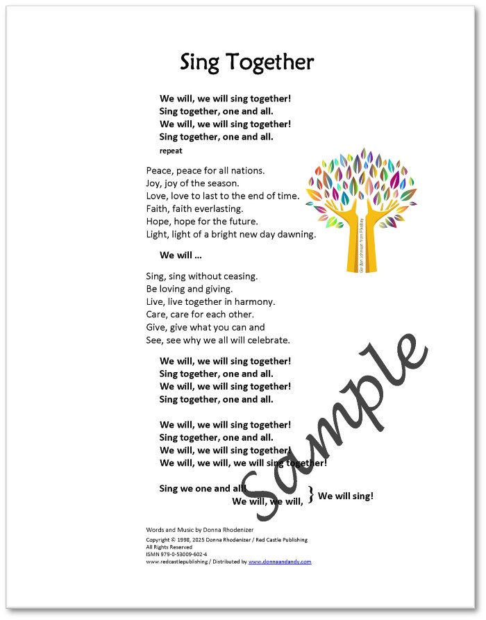 In subsequent years, as school concerts moved away from any reference to anything considered to be sacred, music teachers began asking me for lyric adaptations that were more generic. Those requests resulted in two variations for this song: Sing Together and Winter, Winter. In addition, the winter version of the song has a B section that is less busy lyrically and easier for younger singers, while still fitting with the original accompaniment. Deo has been around for a long time now and in a variety of forms!